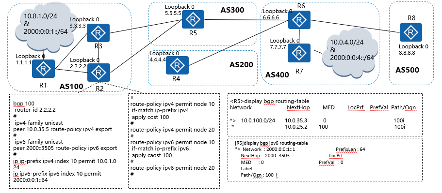 MED:类似于IGP的cost,用于AS间的路由选路;默认为0,值越小越优先