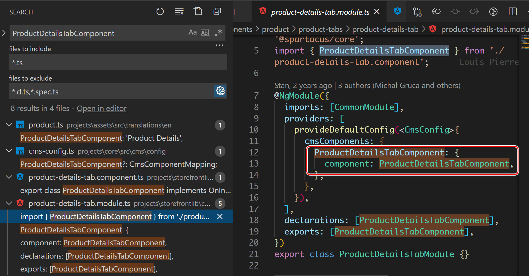 而 detail Component 的 CMS 和 Angular Component 同名: