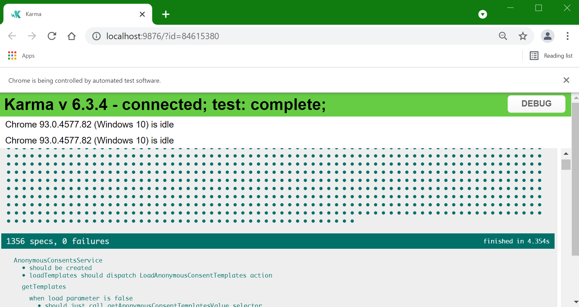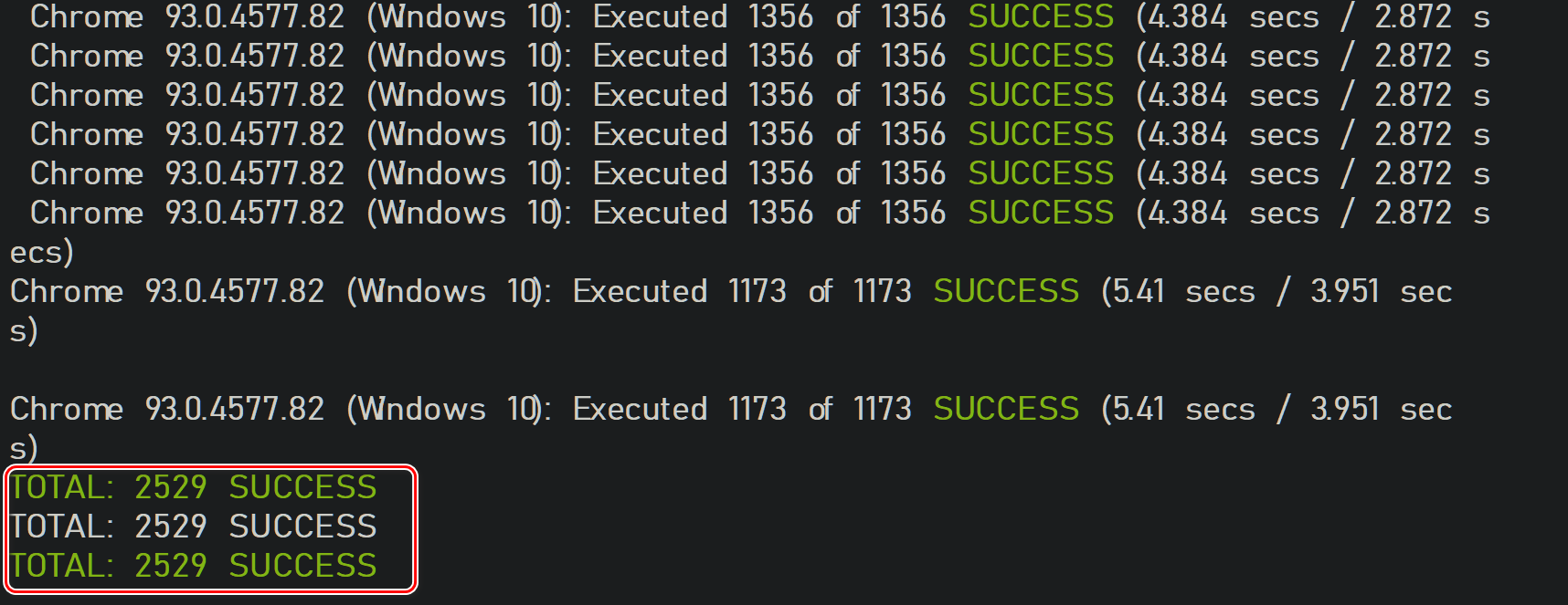 也可以手动执行单个库的单元测试,例如 ng test core:
