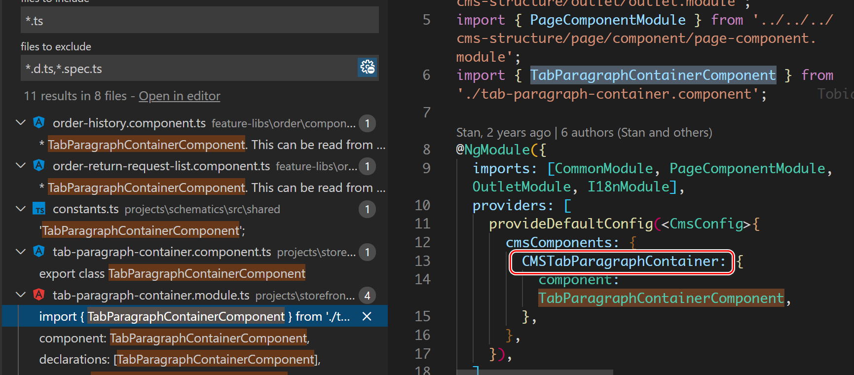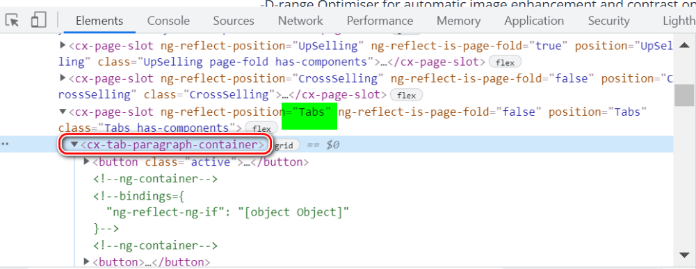 首先在页面上找到 Component selector:cx-tab-paragraph-container: