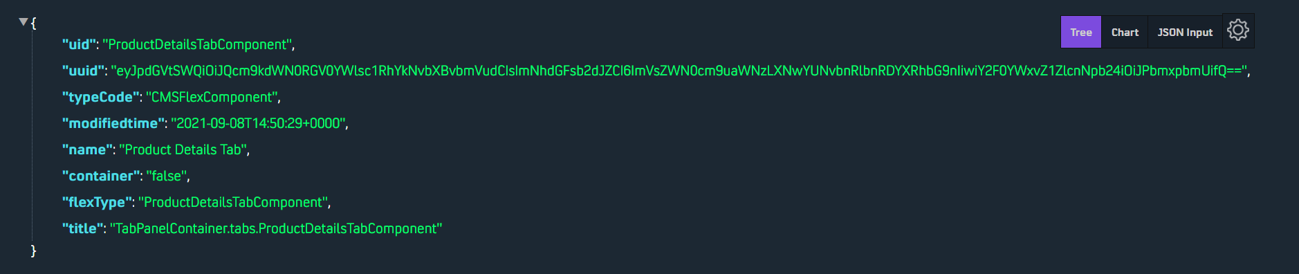 我们用 json pipe 打印出 Component 数据,得到 flexType 为 ProductDetailsTabComponent: