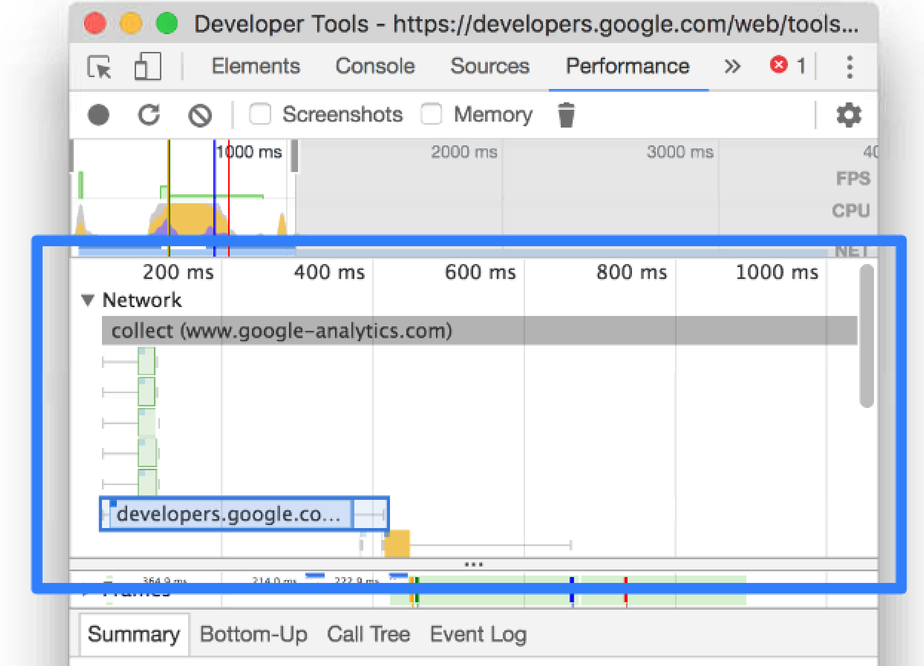 记录页面后,您无需仅依赖 Main 部分来分析活动。 DevTools 还提供了三个用于分析活动的表格视图。 每个视图都让您对活动有不同的看法: