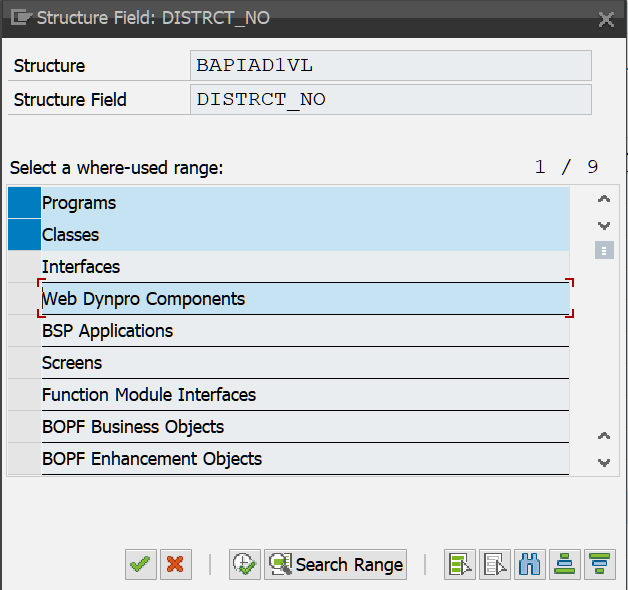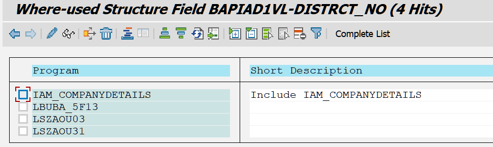 以 ABAP structure BAPIAD1VL 为例,假设我们需要查找 字段 DISTRCT_NO 的来源。