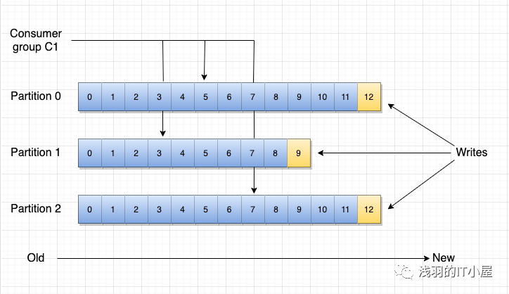 同一 Consumer Group 中的多个 Consumer 实例,不同时消费同一个 partition,等效于队列模式。partition 内消息是有序的,Consumer 通过 pull 方式消费消息。Kafka 不删除已消费的消息对于 partition,顺序读写磁盘数据,以时间复杂度 O(1)方式提供消息持久化能力。