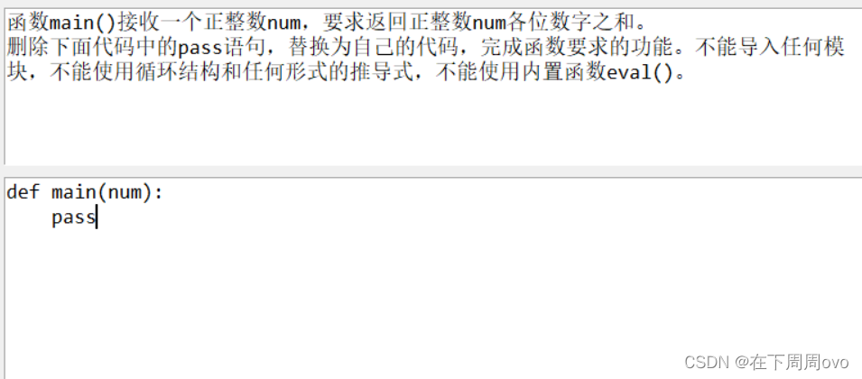 第五题也是这几个题目中最难的题目了,它考了我们内置函数,运算符的使用,还添加了很多限制功能