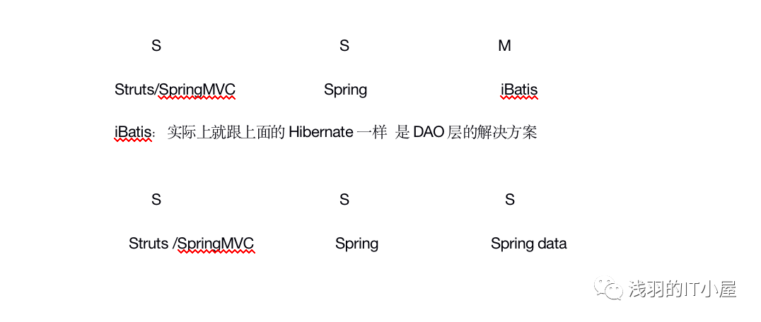 S:Struts/SpringMVC:实际上解决的是我们的控制器的问题(简单的可以认为是Servlet的封装)。