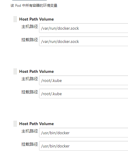 挂载 /var/run/docker.sock 和 /root/.kube 和/usr/bin/docker 以便 cnych/jenkins:jnlp6 使用 kubectl 和 docker 命令