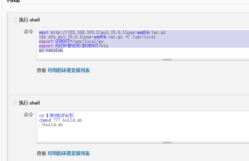 构建 -> 执行 shell