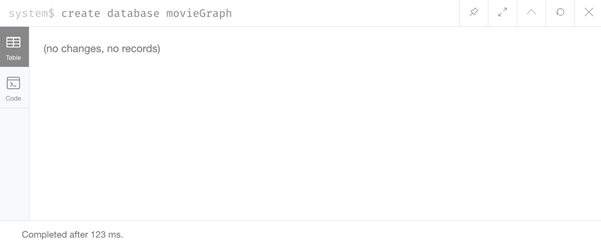 要将数据库添加到实例中,我们可以使用CREATE DATABASE命令。 现在我们将使用一个名为movieGraph的示例,您可以为此数据库选择任何名称。