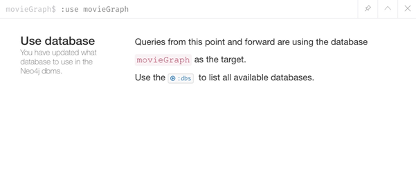 看起来不错。 我们可以切换到新数据库以开始专门使用该数据库(命令是:use movieGraph)。
