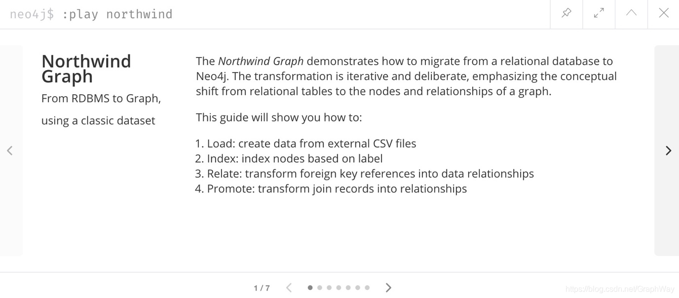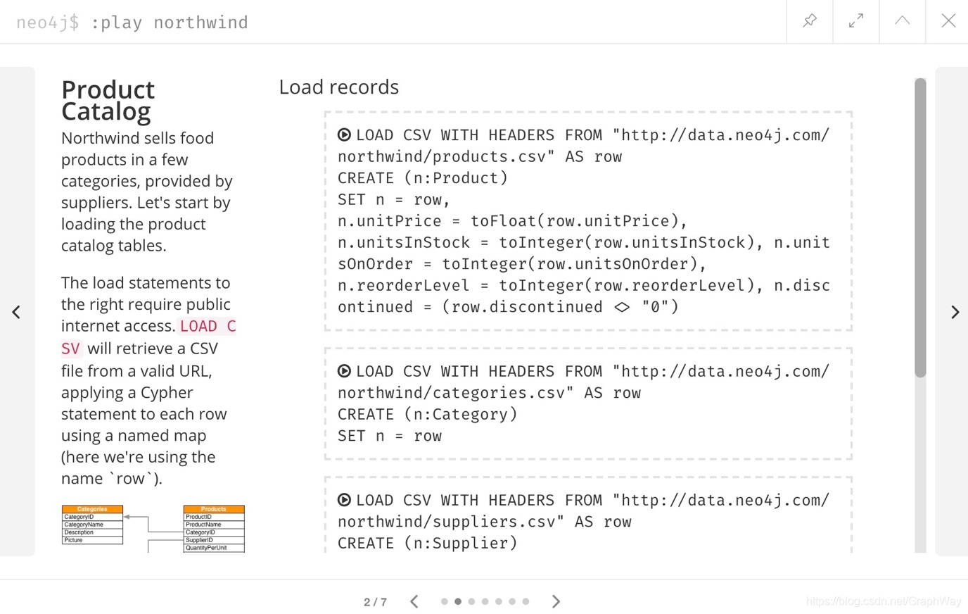 我们将使用浏览器指南:play northwind,该指南具有内置的Cypher查询,我们可以运行这些查询来加载零售供应商,产品和产品类别。