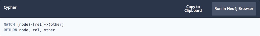 右侧的Cypher查询将以灰色虚线标出轮廓。 我们可以单击该查询,它将复制/粘贴到命令行中。 单击以执行查询,这将返回一些结果,确认已加载数据。