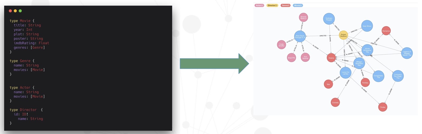 GraphQL将应用的数据看做是一个“图”,即由关系连接起来的实体/节点。这也是它名称中Graph的来由。对于像Neo4j这样的原生图数据库来说,GraphQL有着特别的“亲切感”,因为数据库的模式和应用API的模式是一致的、而且无需转换。