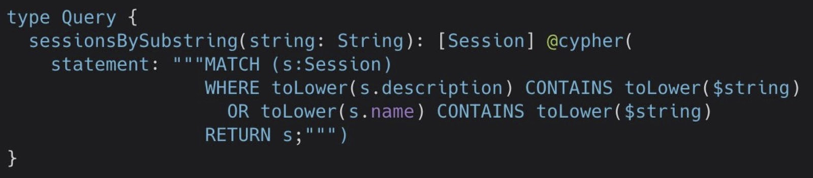 在模式中通过定义Query对象,可以将复杂的Cypher查询和GraphQL API绑定: