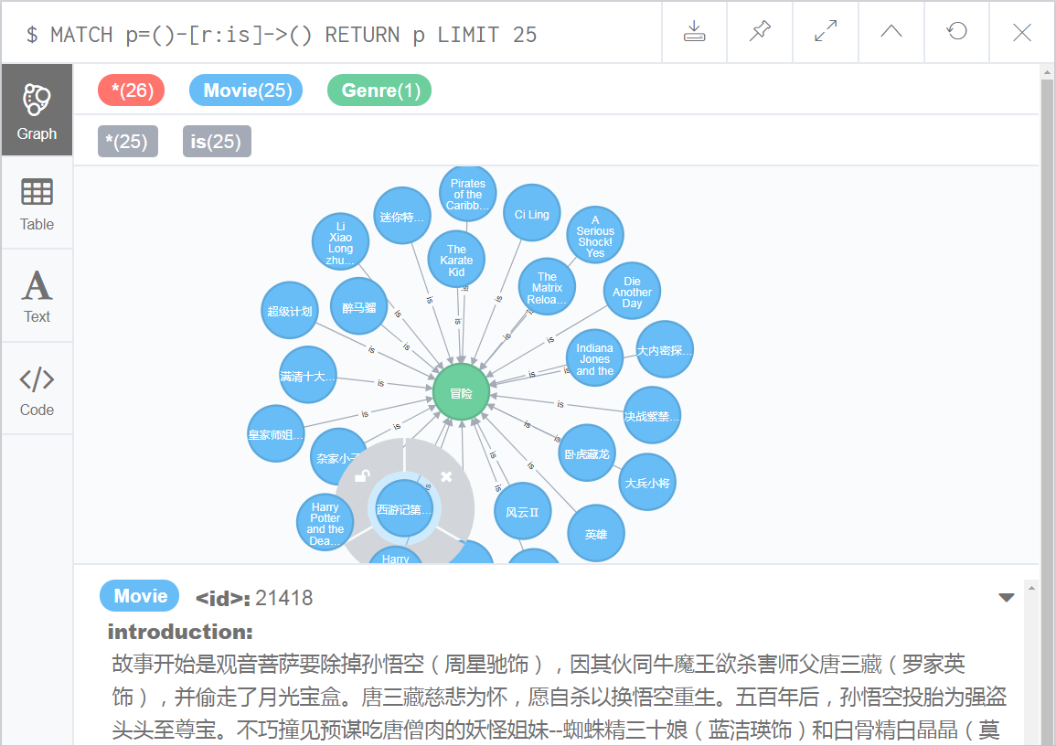 电影信息节点里面带有关系is,对应neo4j中该电影的类型