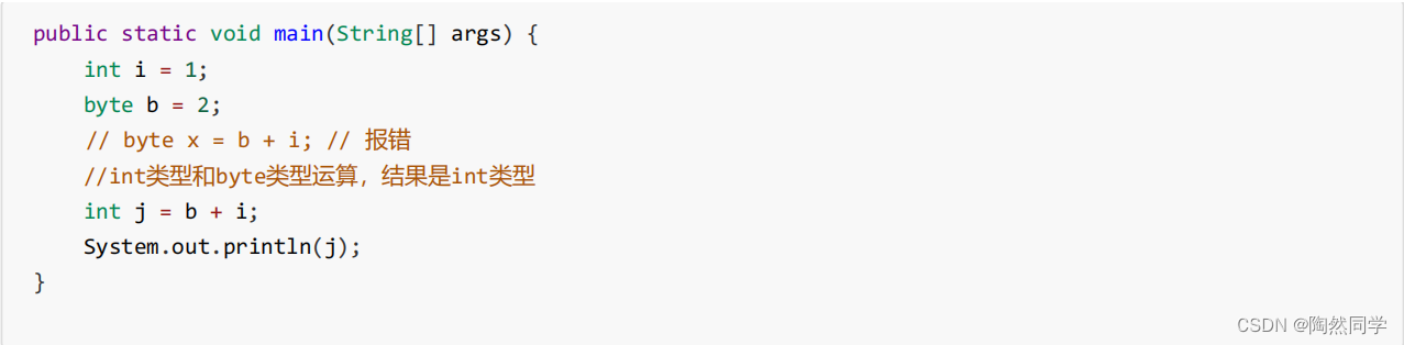 byte 类型内存占有 1 个字节,在和 int 类型运算时会提升为 int 类型 ,自动补充 3 个字节,因此计算