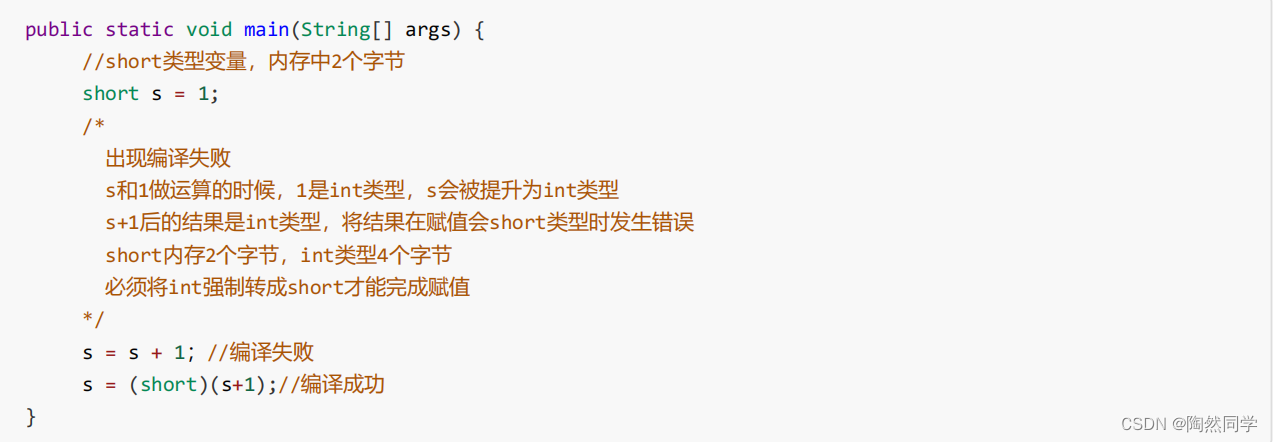 同样道理,当一个 short 类型与 1 相加,我们知道会类型提升,但是还想给结果赋值给short类型