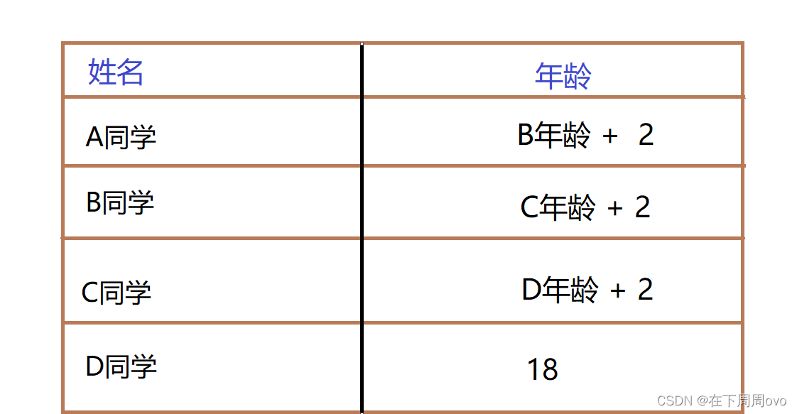 你想知道A同学多大,你是不是还得去问B同学的年龄?B同学说,我也不告诉你,但我比C同学大两岁。