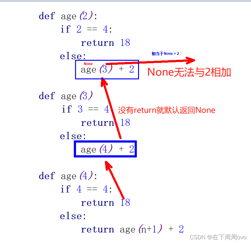 找出下面代码出错的原因,为什么没写return不是返回None而是报错呢?以及为什么会出现以下的错误类型