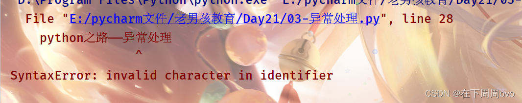 python解析器去执行程序,检测到了一个错误时,触发异常,异常触发后且没被处理的情况下,程序就在当前异常处终止,后面的代码不会运行,这可能会导致你的软件崩溃,谁会去使用一个突然就闪退的软件呢?