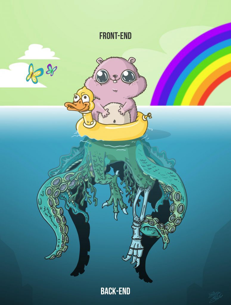 前端下面是应用层,也称为后端。首先,这一层传递信息。将后端视为中间人–它处理和存储从前端接收的数据,并从它下面的层–数据层–提取结果。
