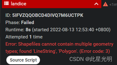 这里面提示了两个错误一个是geometry加了之后显示必须是一个矢量集合才能下载,上面的那张图错误是我们不添加任何东西造成的错误,显示了包含多个属性,不是一个全面的面数据,里面包含有多段线数据。