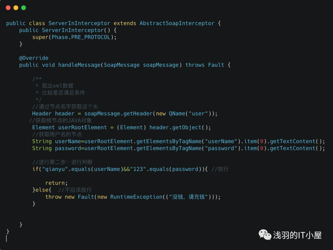 需求:只有用户是qianyu 密码是123 那么这个WebService才允许访问