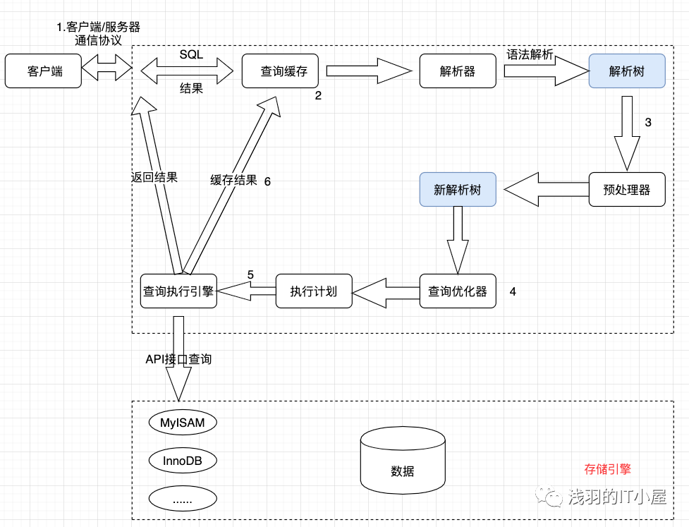 回头总结一下MySQL整个查询执行过程,总的来说分为6个步骤: