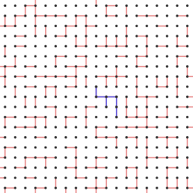 Below we show a configuration when p = 0.3 and C0, the cluster containing the origin, in blue.