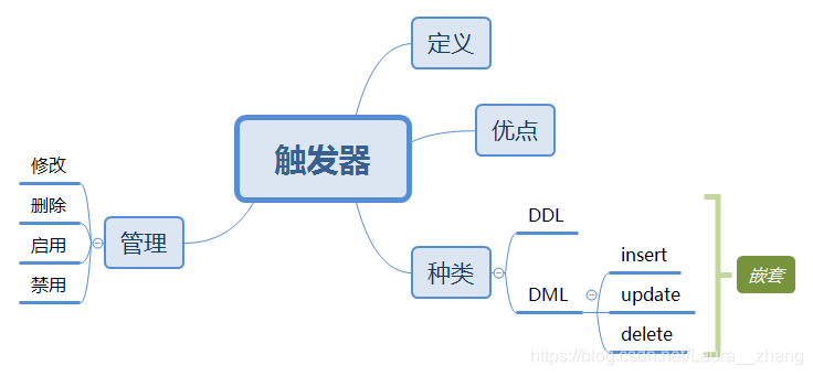 DDL触发器:当服务器或者数据库中发生数据定义语句DDL事件时将被调用。
