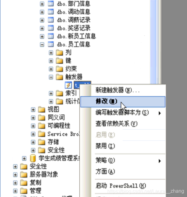 delete from 新员工信息 where 员工编号=14--进行删除操作,触发删除触发器