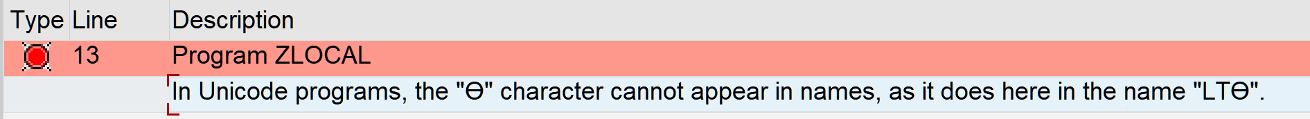 在 ABAP unicode 程序里,希腊字符 “ɵ”不允许作为变量名。