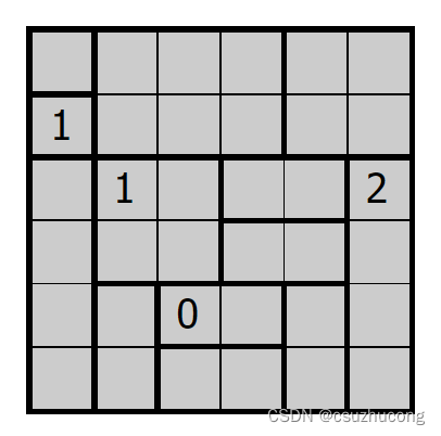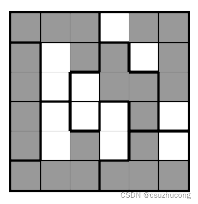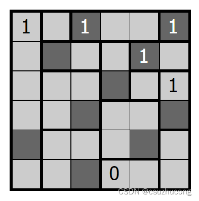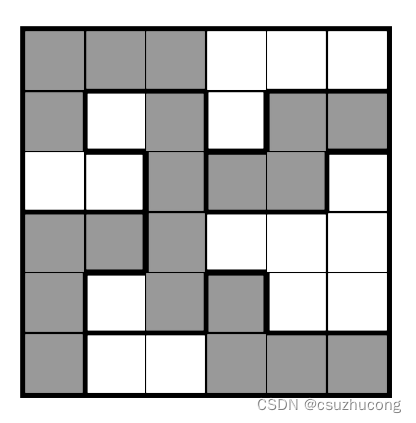 在划分好的初始局面上,在每个区域放置一个四方块(涂黑四个格子),使得2个同类型的四方块不能水平...