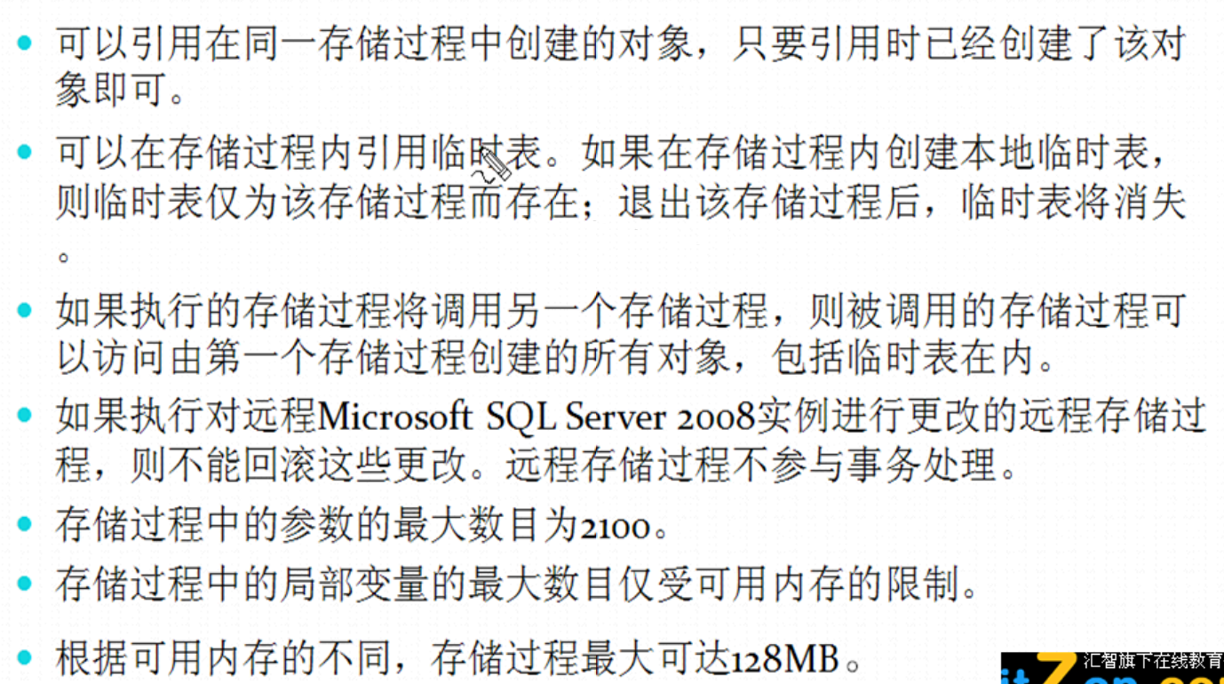 2、具有安全性和所有权连接,可附加到他们的证书。用户可以被授予权限来执行存储过程而不必直接对存储过程中引用的对象具有权限。