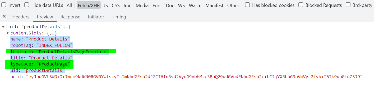 返回的 OCC response 里,能看到 page template:ProductDetailsPageTemplate
