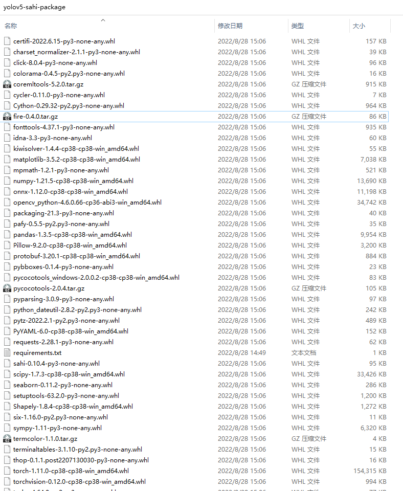 打包完成之后,需要手动对文件内容进行一定修改,包括但不限于删除setuptools(新环境一般自带setuptools),根据不同的系统修改torch版本等。