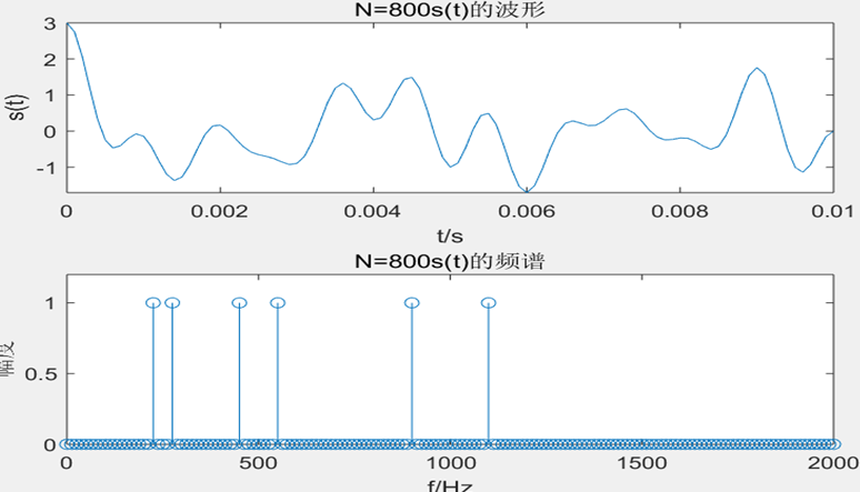 当N=800,1600,1800,2000时产生的频谱图如图12,13,14,15所示。