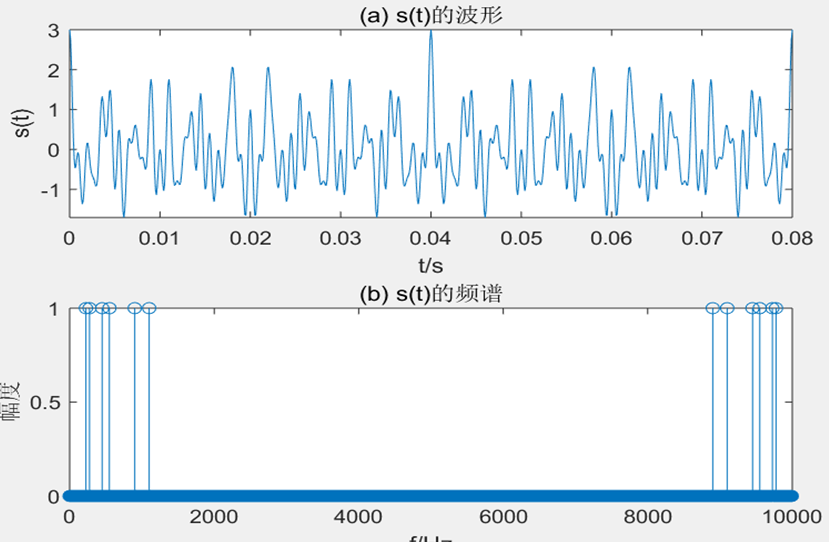 subplot(2,1,1);plot(t,st);xlabel('t/s');ylabel('s(t)');