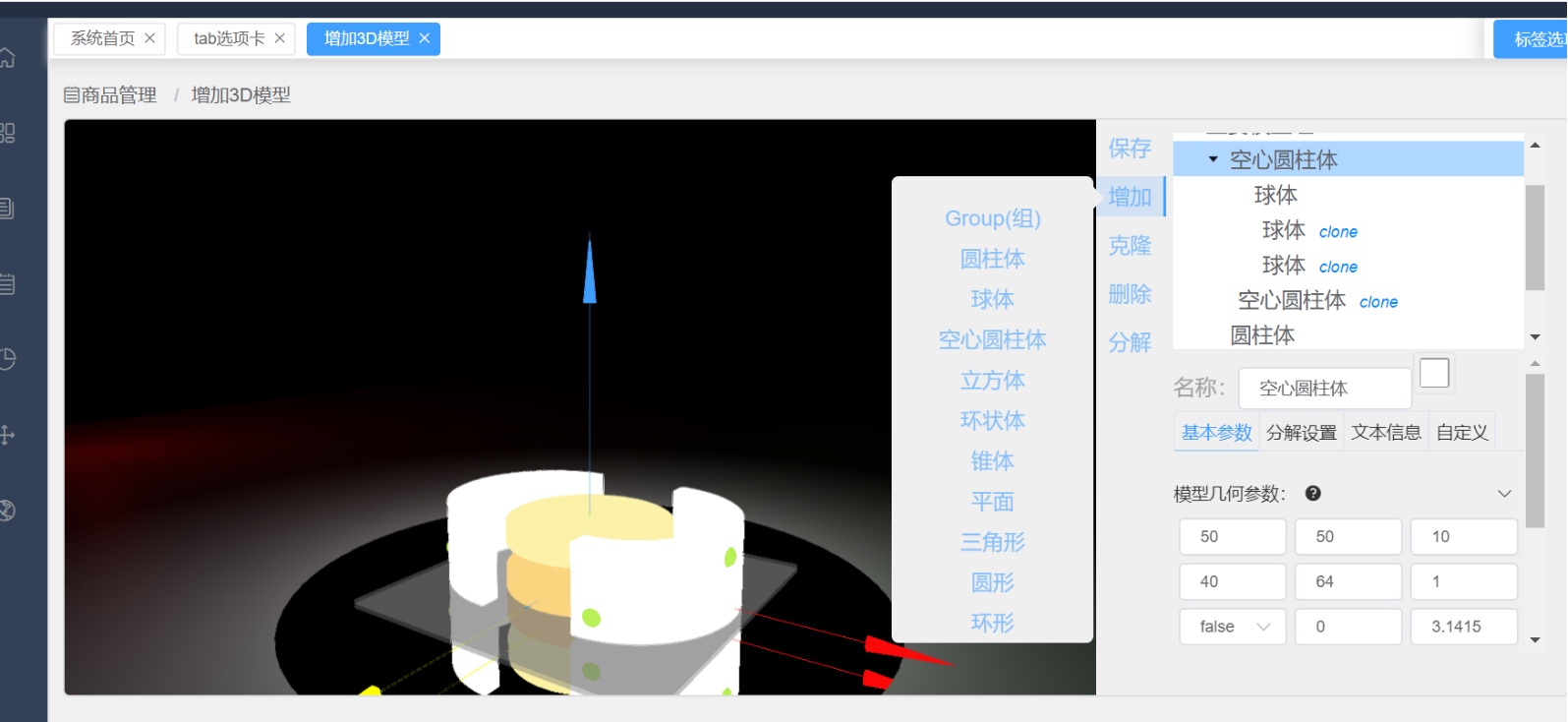 模型制作模块,主要又分为模型导入和模型编辑,让企业或商家块可以进行商品模型和材质的导入、商品模型的重命名、商品模型组件的分解运动的设定、商品信息的录入修、商品模型和材质的关联设定等。