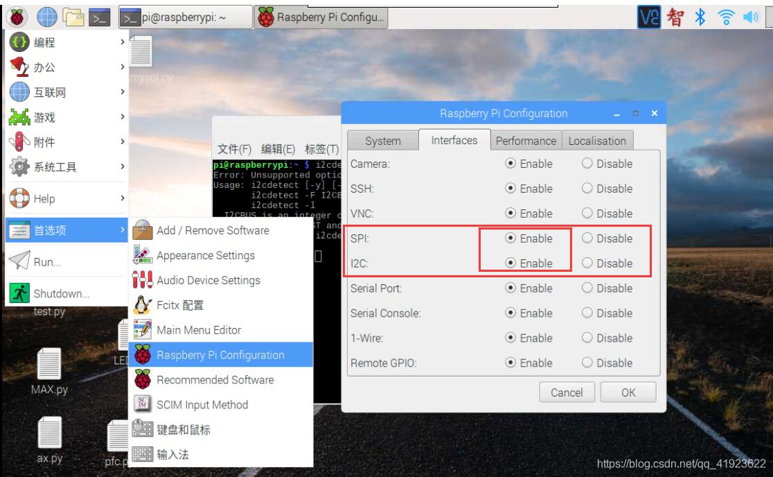 在树莓派上开启SPI和I2C