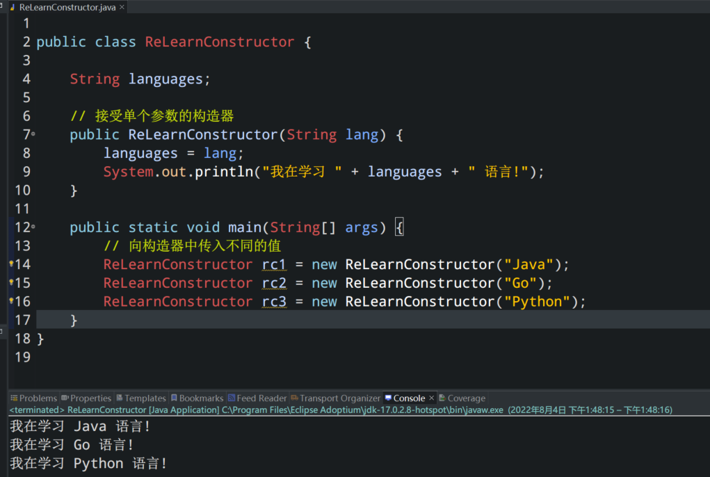 ReLearnConstructor rc1 = new ReLearnConstructor("Java");