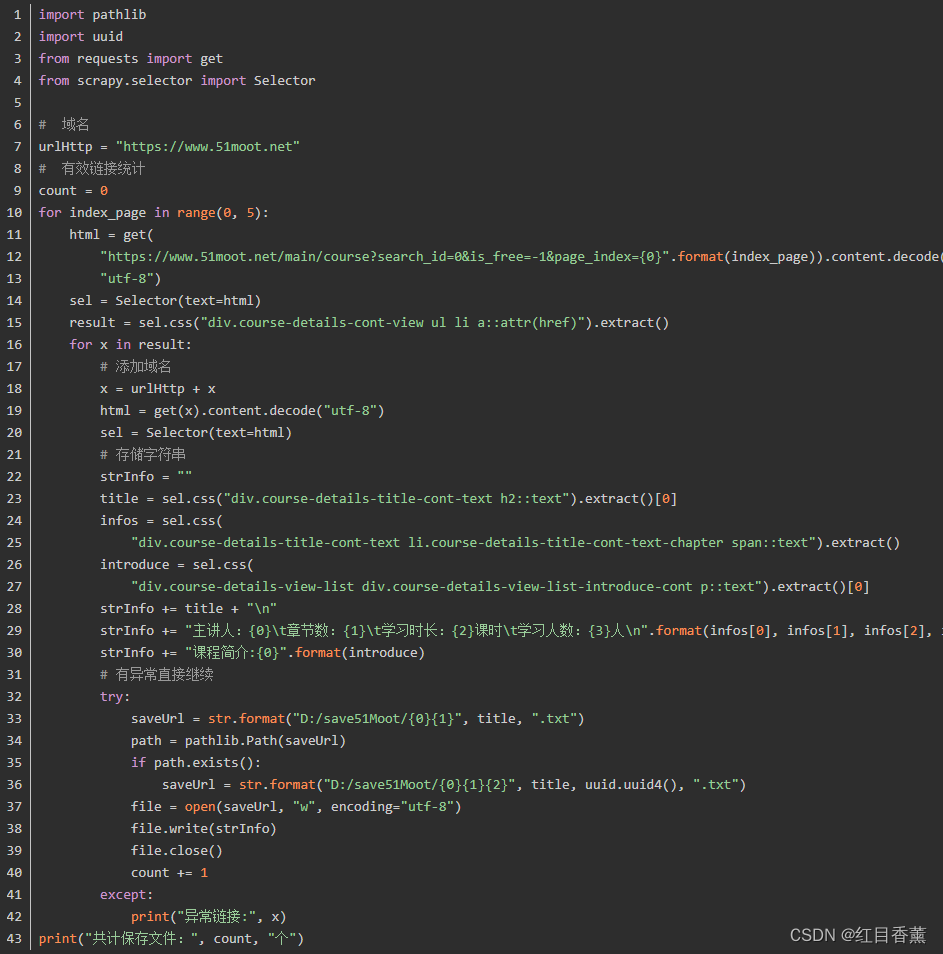 将5页内容的所有课程以每门课程一个【课程名称.txt】文件的方式进行保存。
