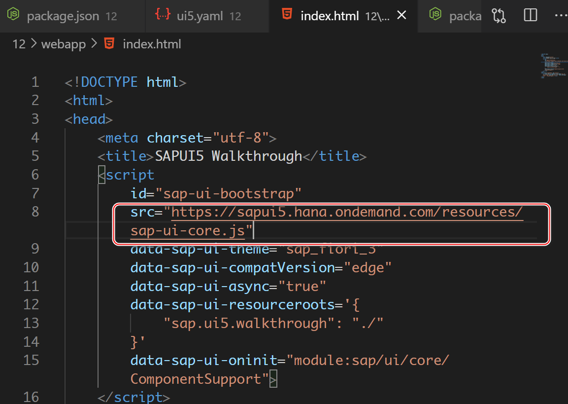 我们在 index.html 里,填入本地的 sap-ui-core.js 文件即可: