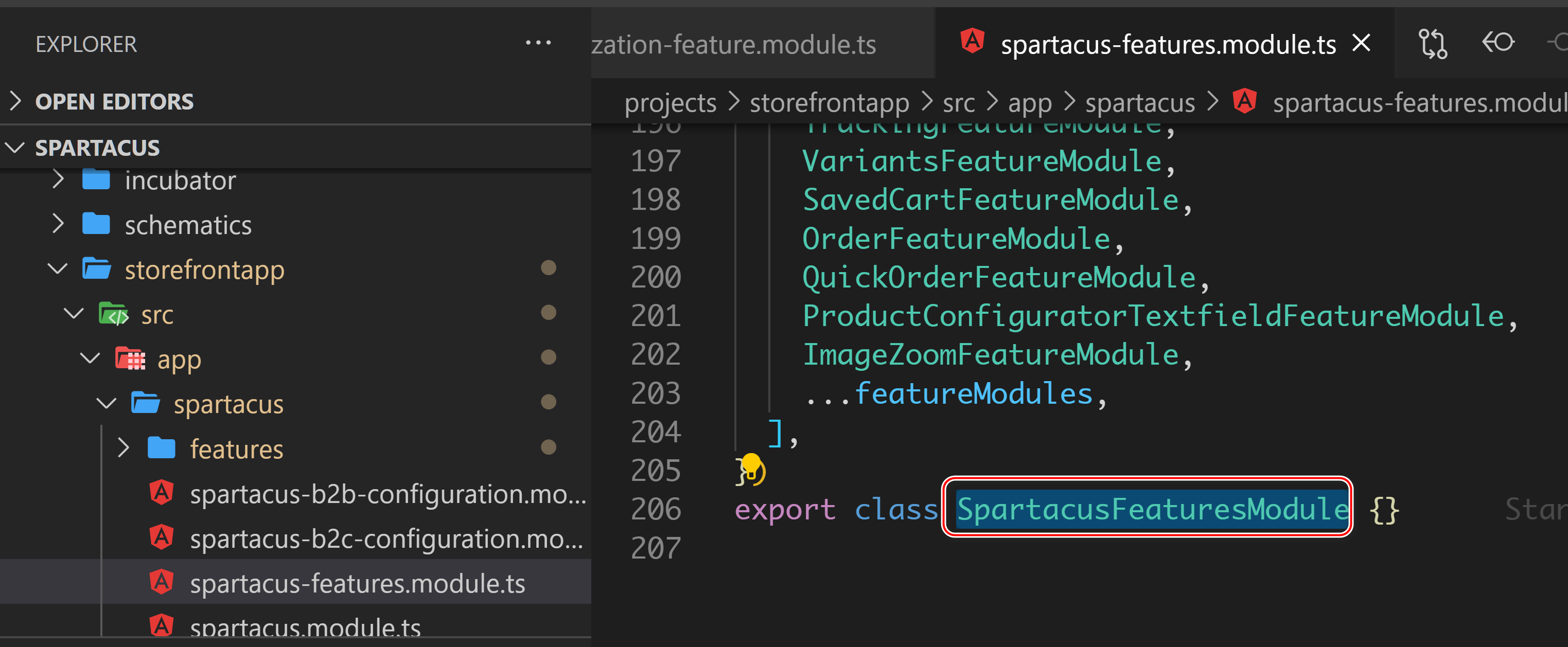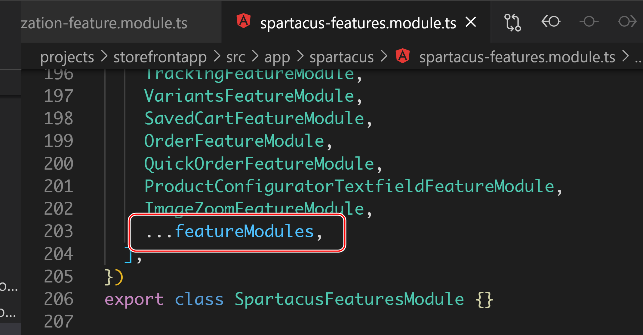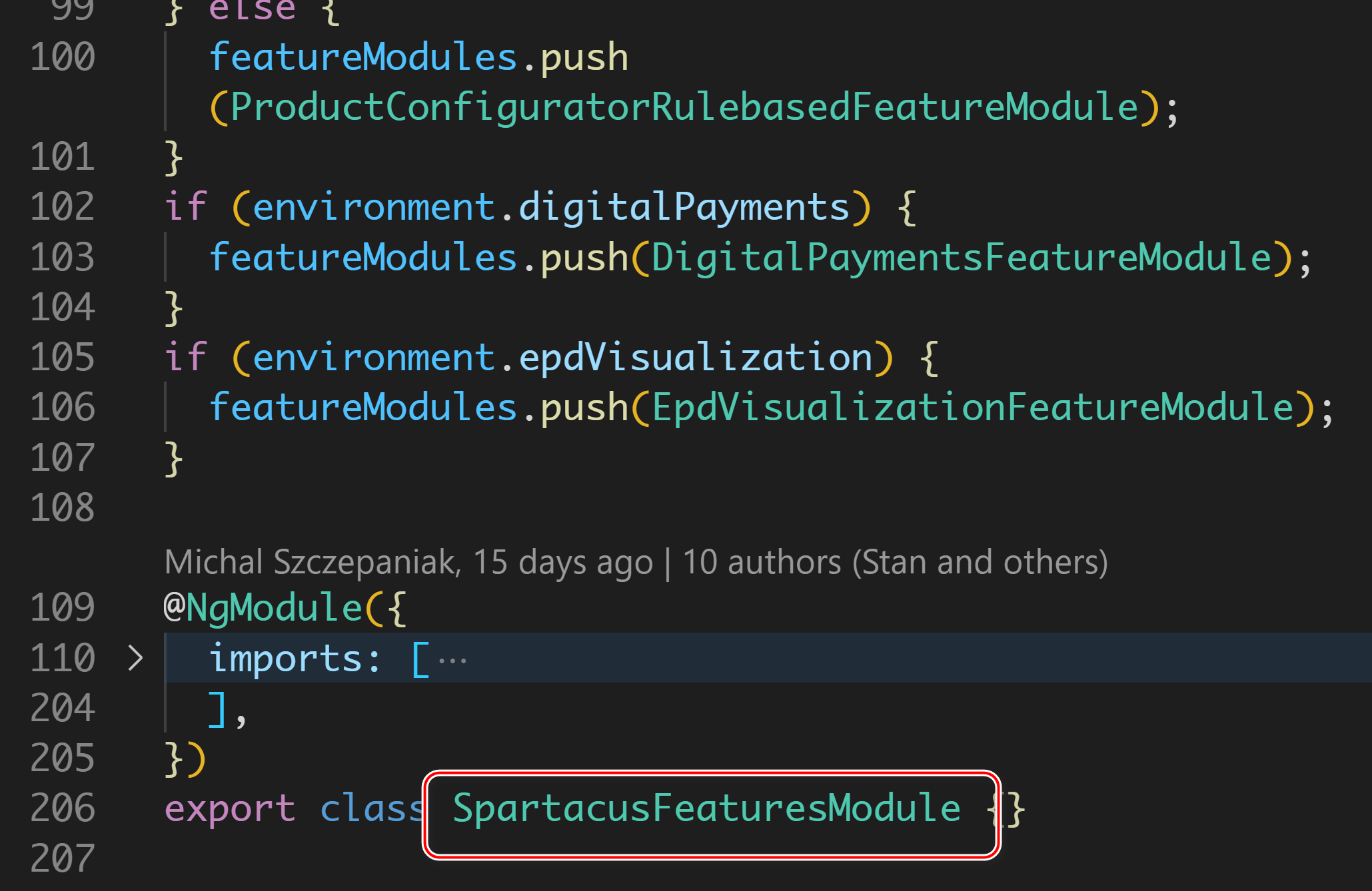 在早期的 3.x 次要版本中,SpartacusFeaturesModule 可能看起来臃肿而忙碌,但随着每个连续的发布,它应该变得更加简洁,因为努力将大部分功能移到单独的库中。