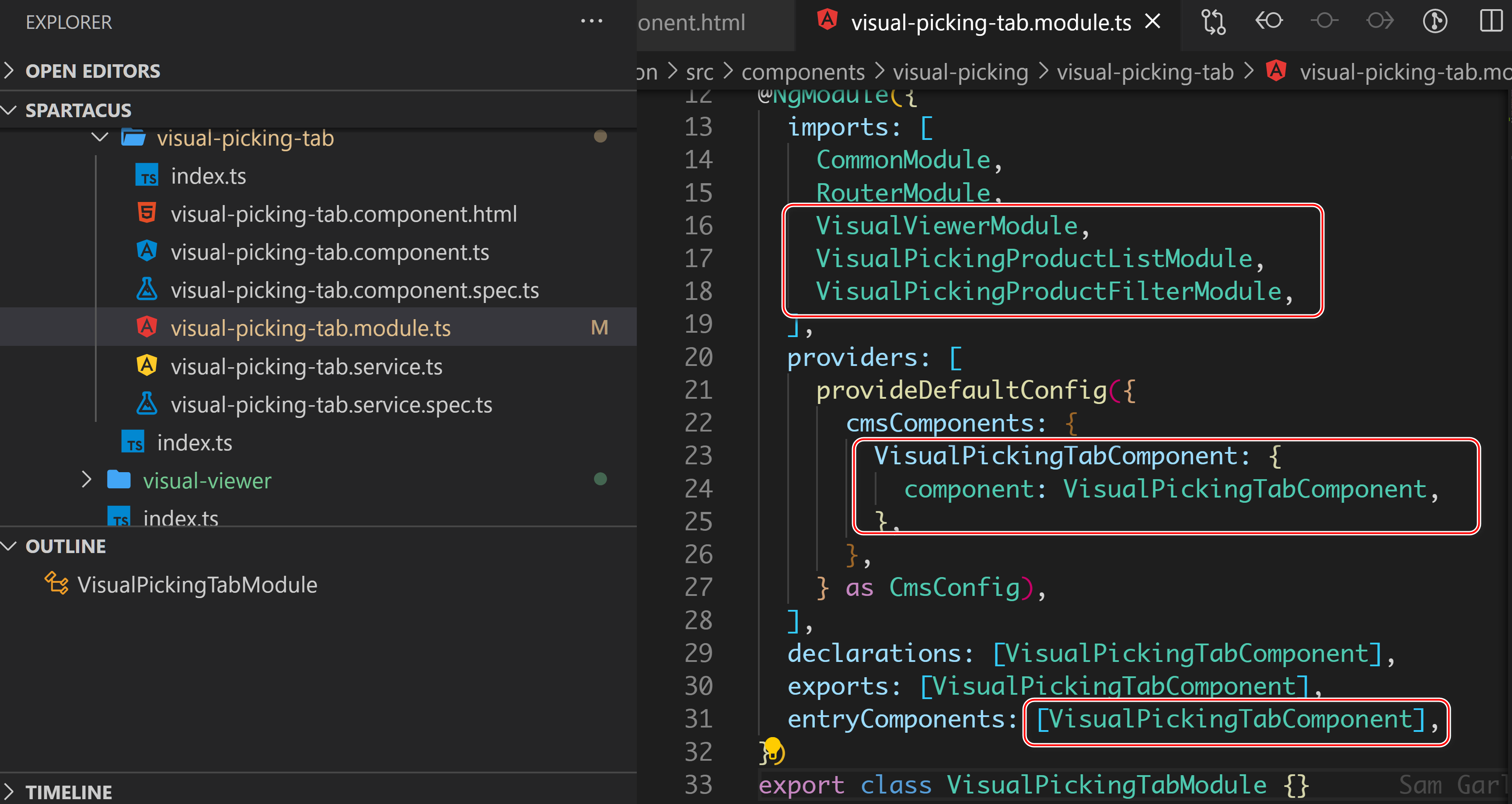 注意第八行 import 的 VisualPickingTabModule,这个才是包含了 Angular Component 的 module.