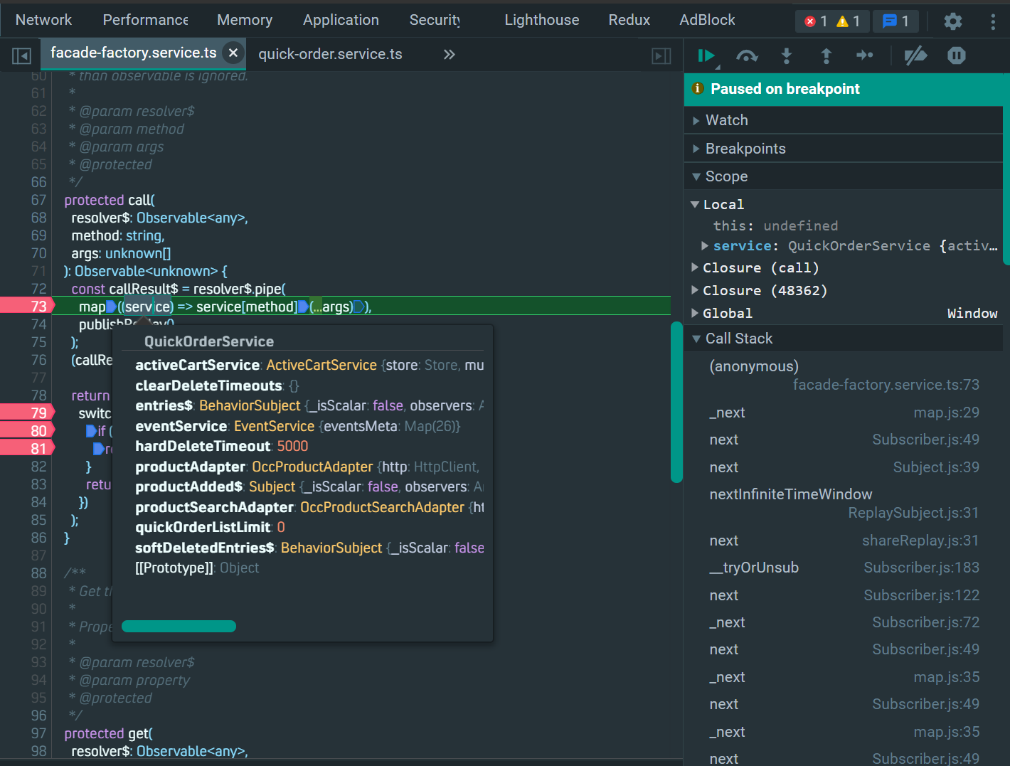 SAP 电商云 Spartacus UI 的 proxy facade 是如何调用实际实现类