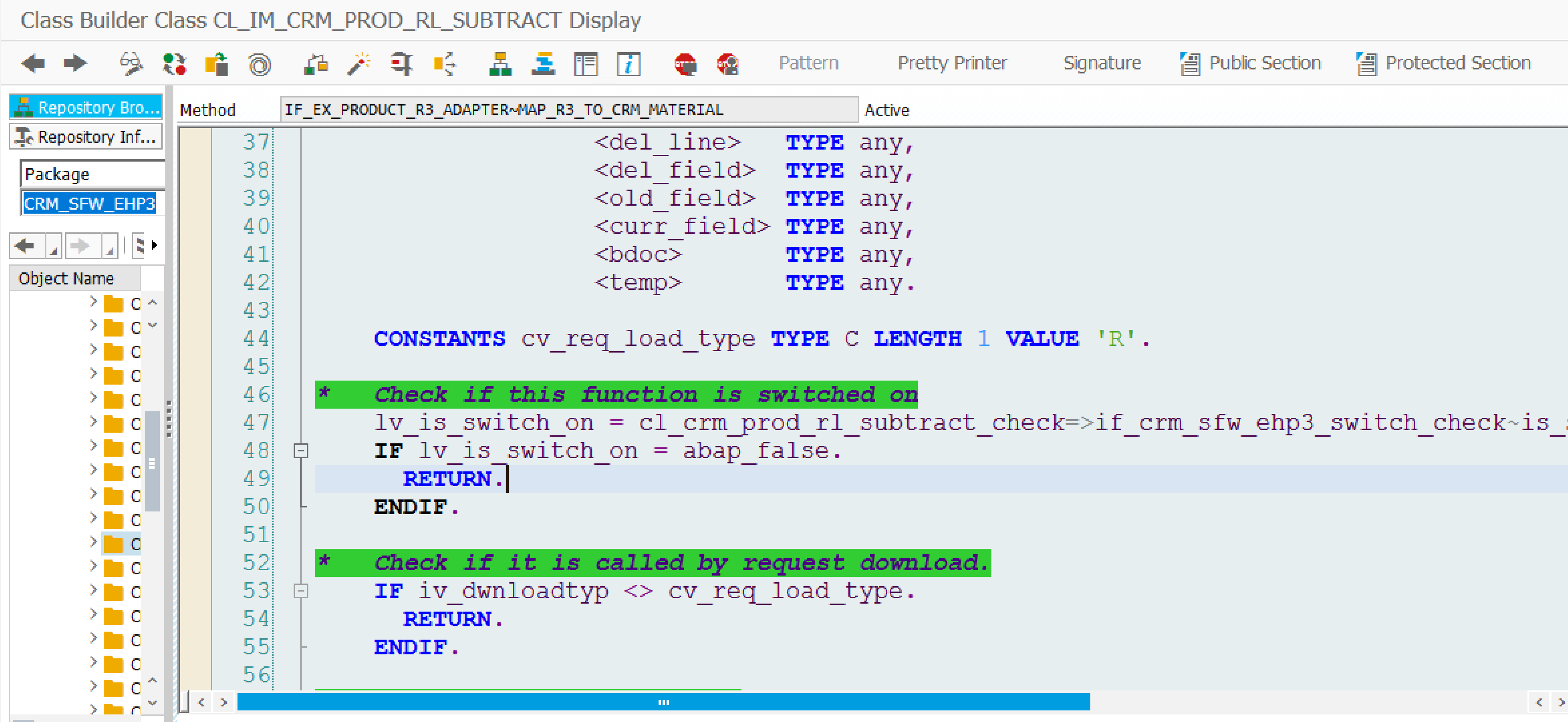 参考代码:CL_IM_CRM_PROD_RL_SUBTRACT