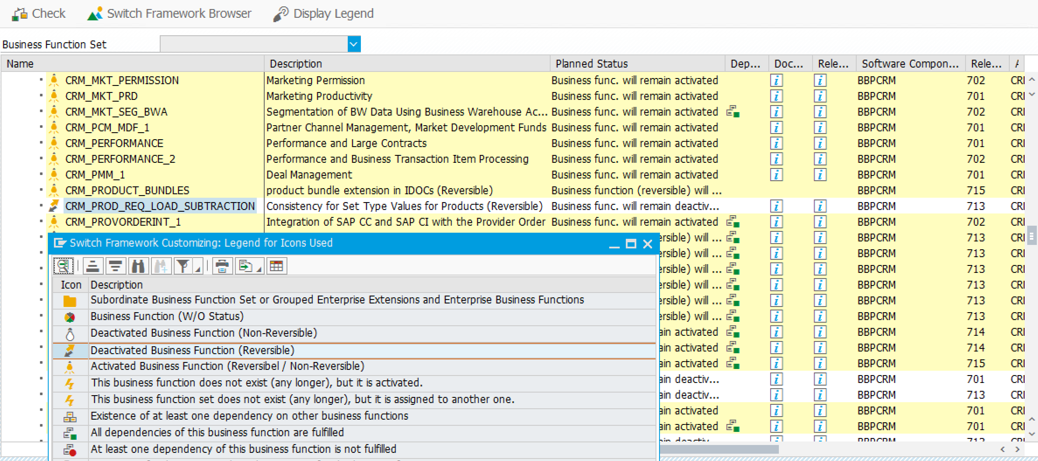 从技术角度来看,业务功能由单独的开关组成,可用于激活实施指南中的编码字符串、菜单条目和定制活动。