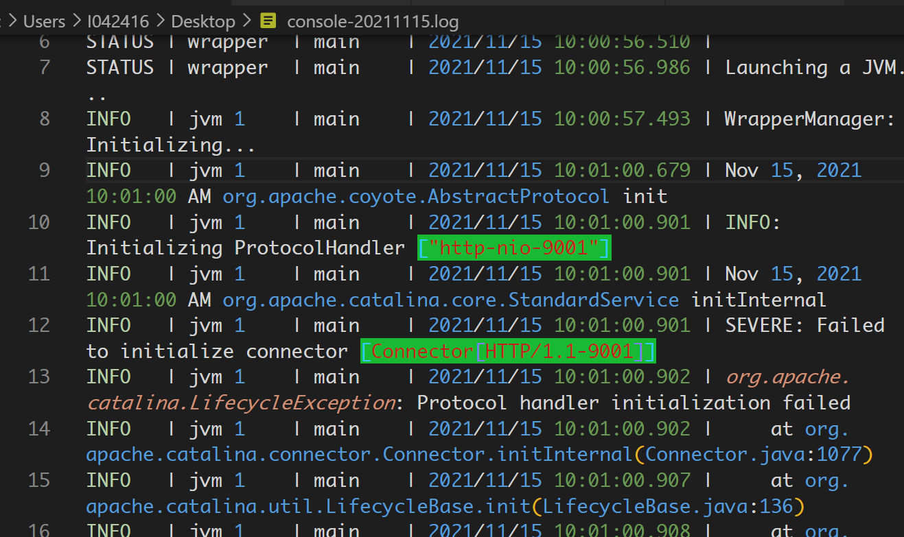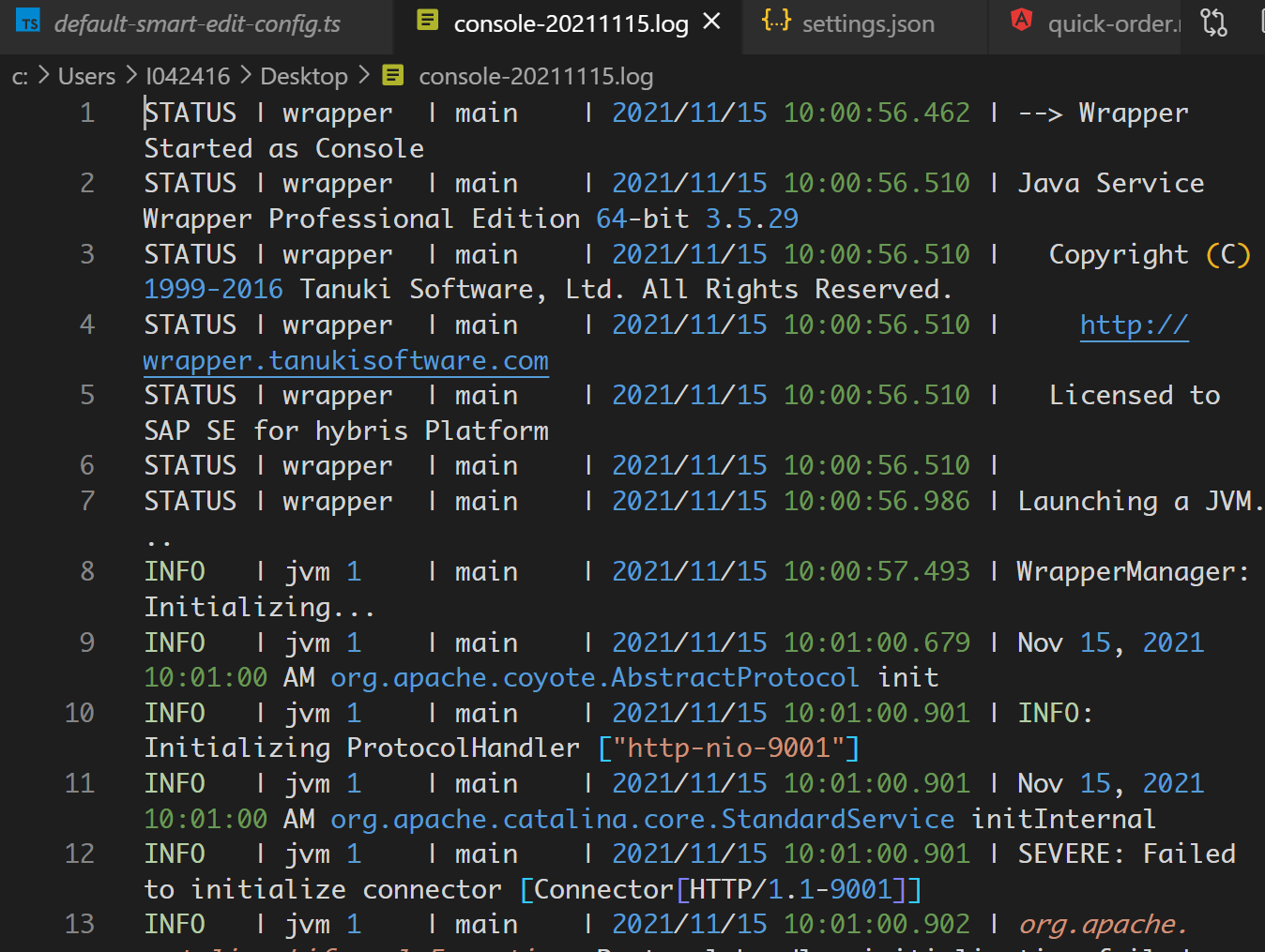 日志文件可以用默认的文本编辑器打开,但是缺乏语法高亮效果,下面是一个例子: