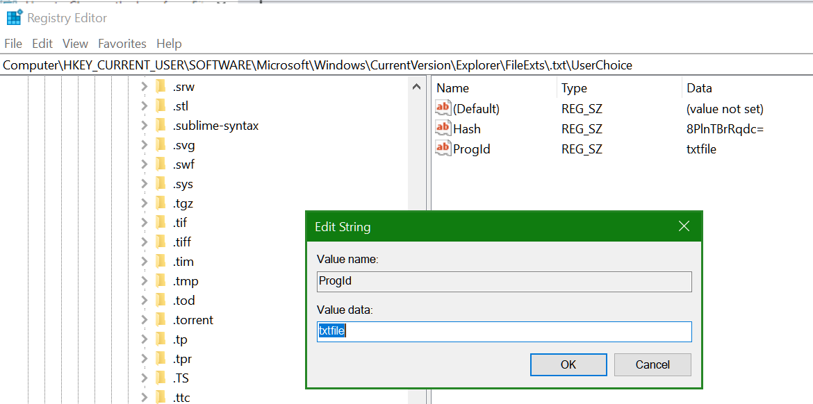 找到 .txt 文件的 userChoice key 为 txtfile: